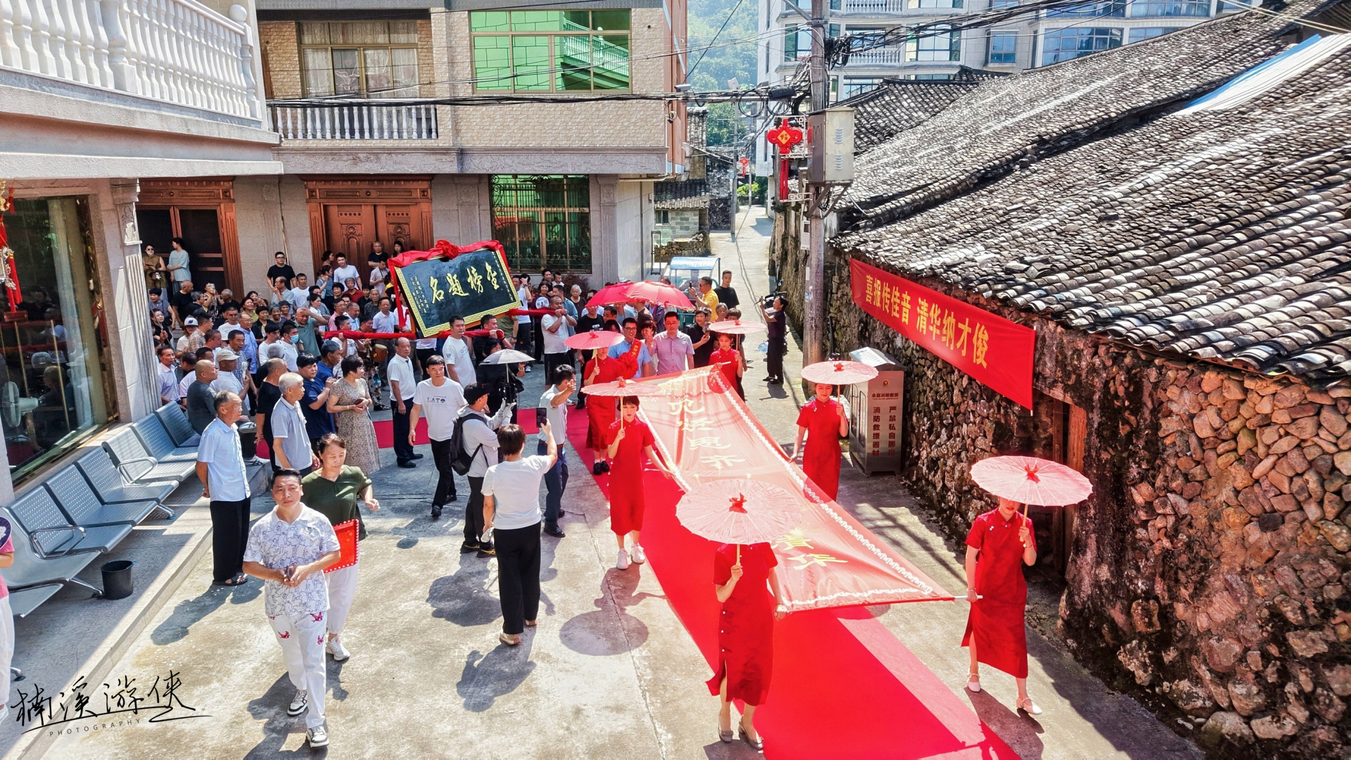“见贤思齐,荣录清华。”当天一清早,中堡村村民就忙碌起来:给村里老宅挂满红幅、村头巷口支起充气拱门、大红气球飘在半空中、红毯更铺满了村道……上午9点,仪式正式开始,陈思齐和村民们抬着写有“金榜题名”的牌匾,走过了一张张红毯,倾听了村里老人的祝福和贺词。仪式简化了许多传统环节,但保留了核心步骤,早晨吉时抬匾游村,源自永嘉“耕读传家”古训,蕴含着永嘉本地的民俗文化。这样的升学仪式体现了村里对教育的重视和对学子的期许。