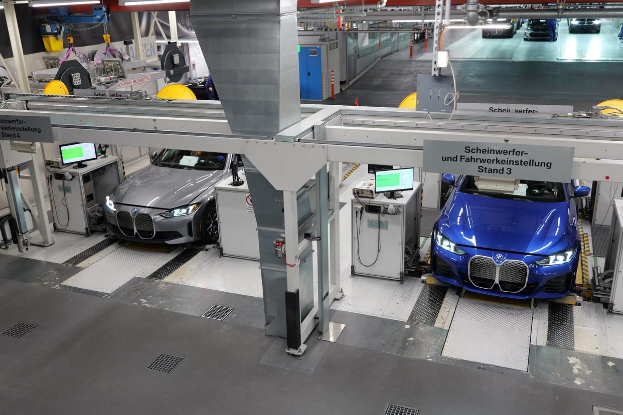 这是2月27日在德国慕尼黑拍摄的宝马集团工厂内的流水线。新华社记者邰思聪摄