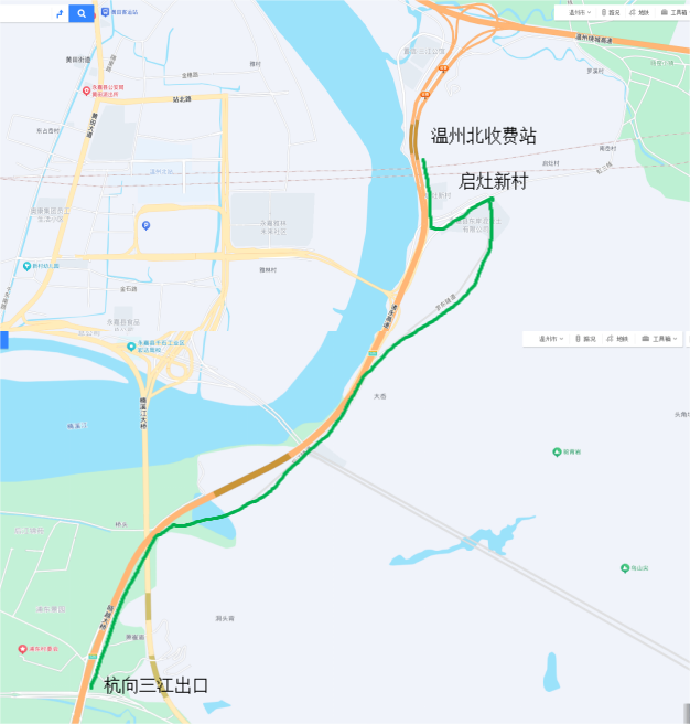 往乐清宁波方向三江出口—104国道—大桥北上高速