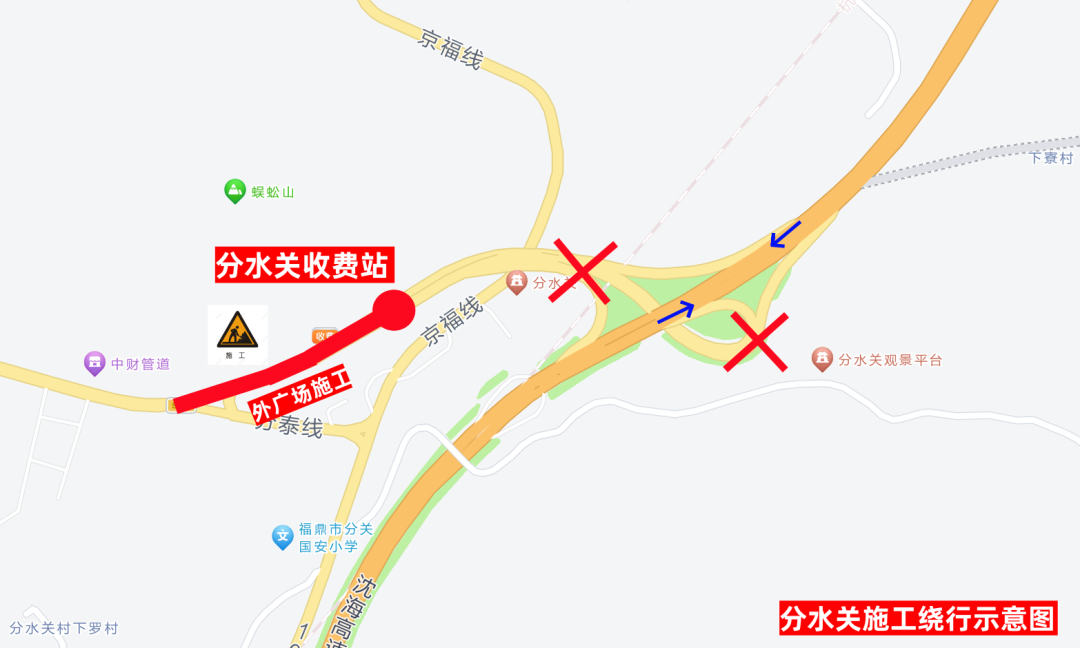 需要从分水关收费站上高速的车辆,请选择绕行福鼎北或观美收费站上高速。