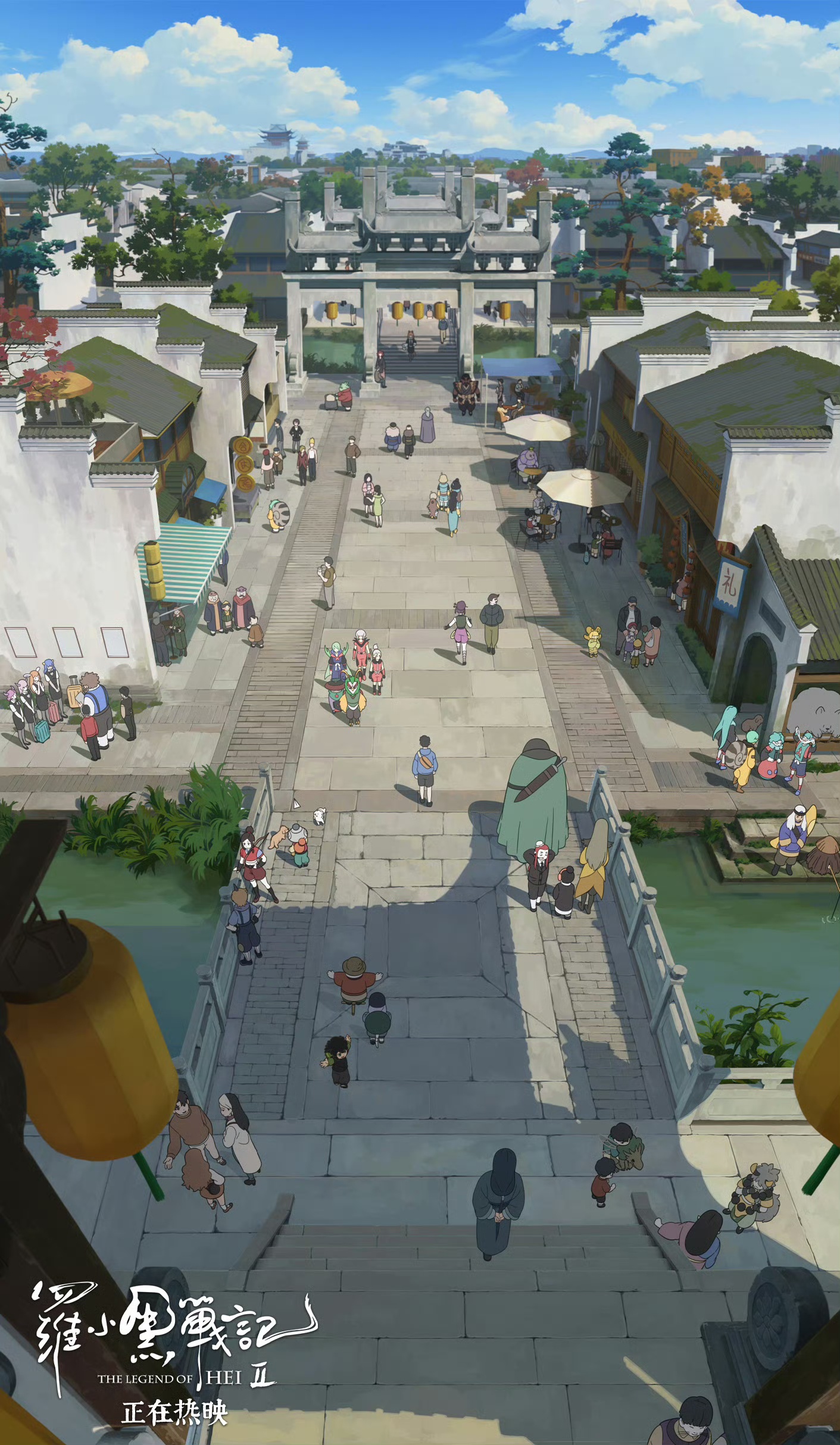 此外,影片的画面堪称一场视觉盛宴。它坚守二维手绘风格,超20万张手绘原画,每一帧都凝聚着制作团队的心血与热爱。在场景构建上巧妙地融合了中国传统文化元素与现代奇幻风格,打造出一个独特的东方奇幻世界。从古老的亭台楼阁到繁华的现代都市,从神秘的妖灵会馆到宁静的山间小镇,每一个场景都描绘得细腻入微,充满了诗意与美感。最让人惊喜的是,影片中还藏了很多属于温州观众的“专属彩蛋”,将苍南的地名、风景与方言巧妙融入其中,让全国观众都能在视听之间感受到苍南的独特韵味与魅力。当小黑和鹿野瞬移穿梭于各个会馆,“苍南会馆”“洞桥会馆”“流石会馆”等带着熟悉地名的场景接连闪现;“领盔镇”的路标是灵溪镇的方言谐音,总能让影院里响起会心的笑声;背景音里的“修煤气灶、洗衣机、热水器”等方言叫卖声,更让全国观众仿佛瞬间置身于苍南的老街巷,这些藏在细节里的巧思,满是只有本地人才能秒懂的亲切。