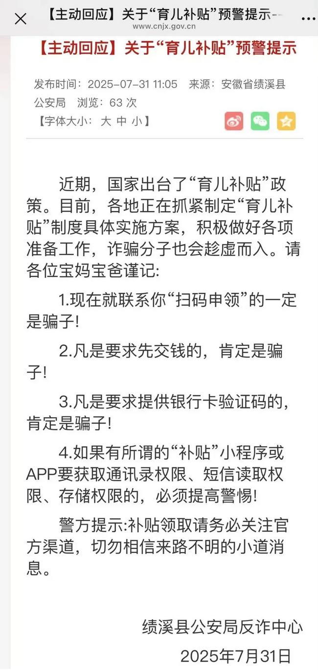 原标题:这些“育儿补贴”千万别领!警方紧急提醒