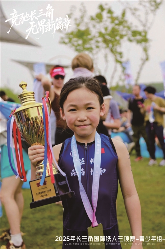 在日复一日的练习下,宝清在2025年中国小铁人系列赛暨城市家庭铁人三项赛青田站中,以16分12秒的成绩夺得女子U9迷你距离组(包括100米游泳、3200米自行车骑行、800米跑步)第一名。“虽然高温下训练时很累,但站上领奖台的那一刻,让我觉得一切都是值得的!”宝清笑着说。