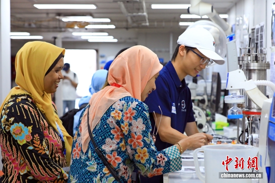 当地时间8月8日,中国厦门大学“嘉庚”号海洋科考船在印度尼西亚雅加达举行公众开放日活动。图为民众在实验室参观。