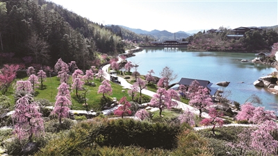 自2015年,在永嘉云岭乡南陈村地下约1800米深处打出第一眼温泉后,当地就以“高山温泉”为特色,打造山地度假标杆地。10年来,围绕项目建设,村里拆除老旧房屋,统一白墙、屋檐风貌,让连片的村舍披上了“新衣”。村内原本仅宽70厘米的羊肠小道不断拓宽,变成了双向能开车的大路。村口竖起了巍峨牌坊、修起了云鹤公路,与雁楠公路相连接,大幅缩短了山村至外界的距离。道路两侧种起了紫薇花,温泉中心区龙梅如瀑,一年四季花事不断,美不胜收。