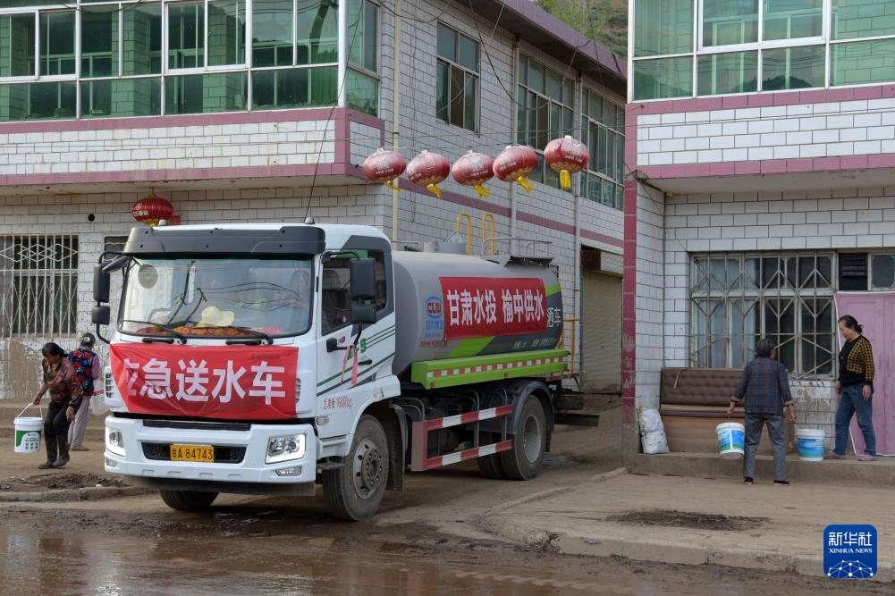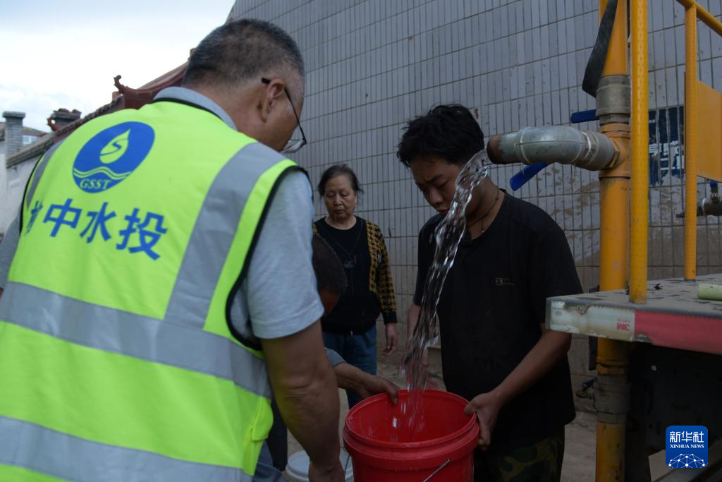 8月11日,在榆中县城关镇兴隆山村,当地水务部门为村民送去饮用水。当日,甘肃省兰州市榆中县山洪灾害抢险救援工作持续展开,当地组织卫生防疫、供电、交通、水务等部门力量积极开展灾后恢复工作。新华社记者 范培珅 摄
