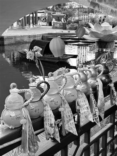 这些“葫芦”实为特制玻璃容器,每个“葫芦”瓶身上用传统漆器工艺呈现“温州”二字。