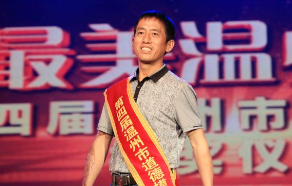 2013年10月11日,周震寰参加第四届温州市道德模范颁奖仪式。资料照片 陈翔 摄