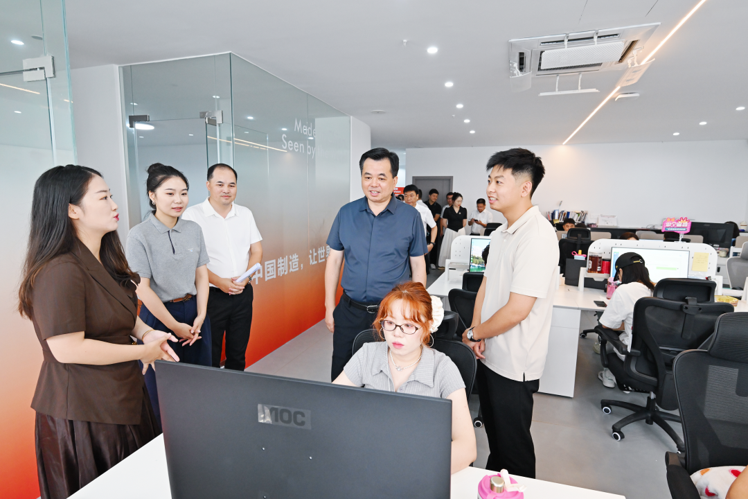 在五彩蜗牛直播电商产业园,徐建兵详细询问了园区运营和直播经济发展成效。该园区已引进近30家电商企业,打造了集摄影、培训、代播、场景搭建于一体的服务体系,并提供500个就业岗位。徐建兵要求园区继续强化数字技能培训,充分利用现有资源和平台,深挖乐清特色产业潜力,进一步做大做强。
