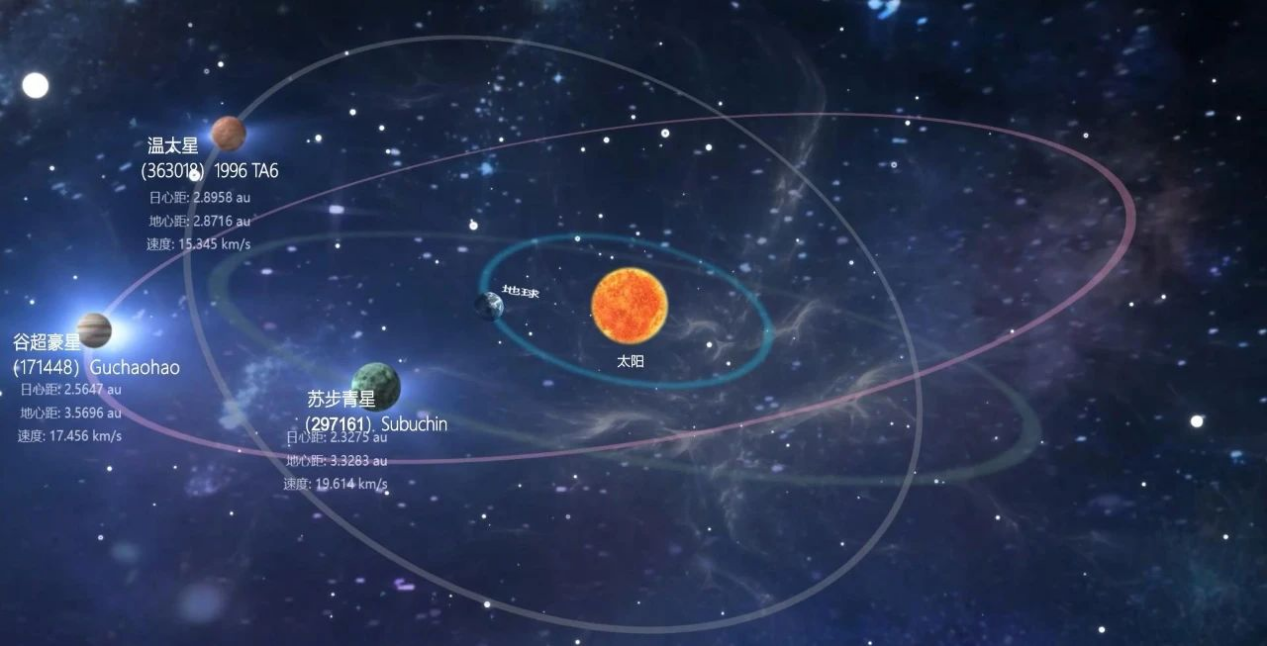 在浩瀚星空中,被命名为苏步青星、谷超豪星、温大星的三颗小行星。