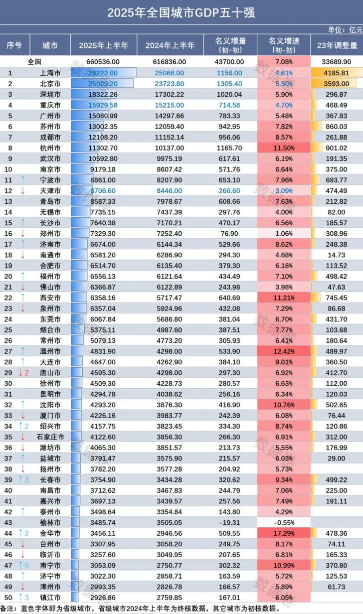 2019年,温州重回GDP全国30强,此后5年,都是30强城市的“守门员”。2024年,温州凭着9718.8亿元的成绩单,连升2级,来到全国第28位。今年上半年,温州又进一步,GDP达4831.9亿元,名义增速12.42%,排名27位,又上升了一位。