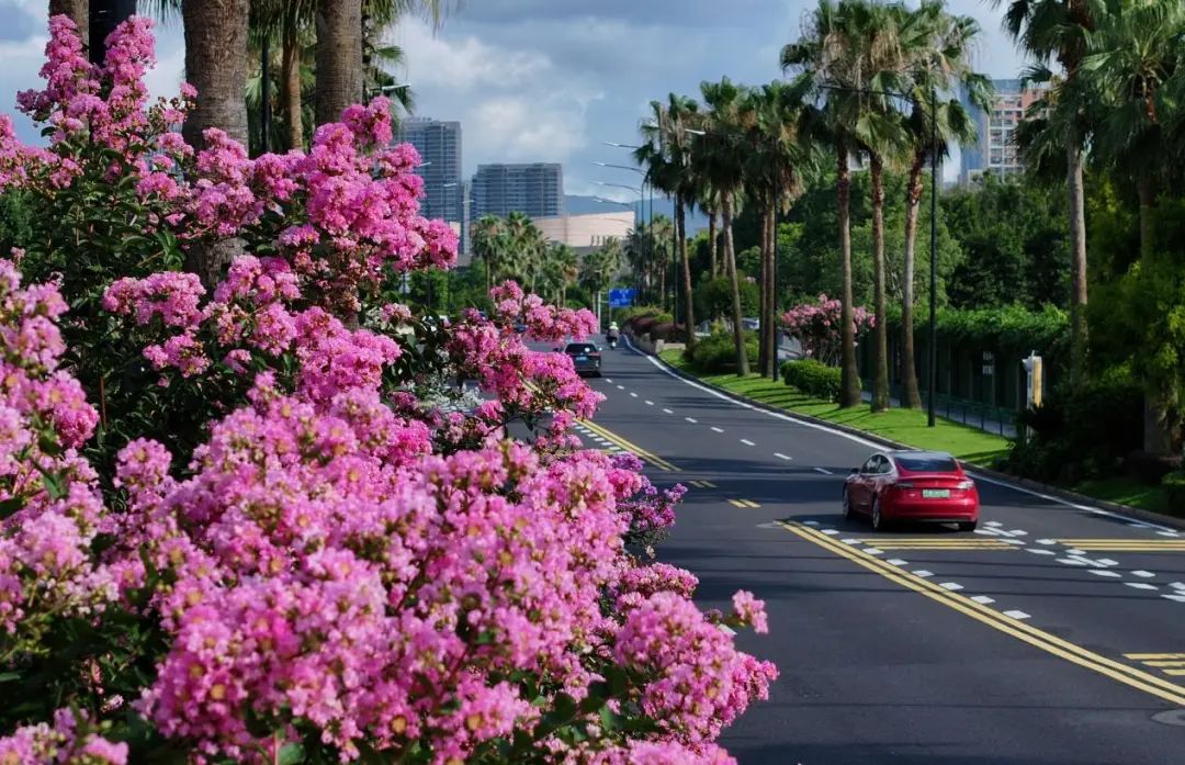 鹿城区园林绿化管理中心相关负责人介绍,鹿城区道路紫薇以传统紫薇为主,近年来不断引进“红火箭”、“天鹅绒”、矮紫薇等新优品种,优化花期衔接与株型搭配,只为在盛夏缔造更动人的街景。近期,市区锦绣路、南浦路、新城大道等20多条交通干线上,2300多株紫薇已经迎来盛花期,绵延不绝的紫薇花带,瞬间提亮了城市的色彩基调。
