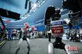 8月15日,世界人形机器人运动会在北京国家速滑馆(冰丝带)开赛。图为工作人员将机器人抬离自由搏击比赛场地。中新社记者 韩海丹 摄