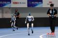 8月15日,世界人形机器人运动会在北京国家速滑馆(冰丝带)开赛。图为灵翌科技H1人形机器人获得1500米冠军。中新社记者 韩海丹 摄