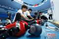 8月15日,世界人形机器人运动会在北京国家速滑馆(冰丝带)开赛。图为选手调试机器人。中新社记者 韩海丹 摄