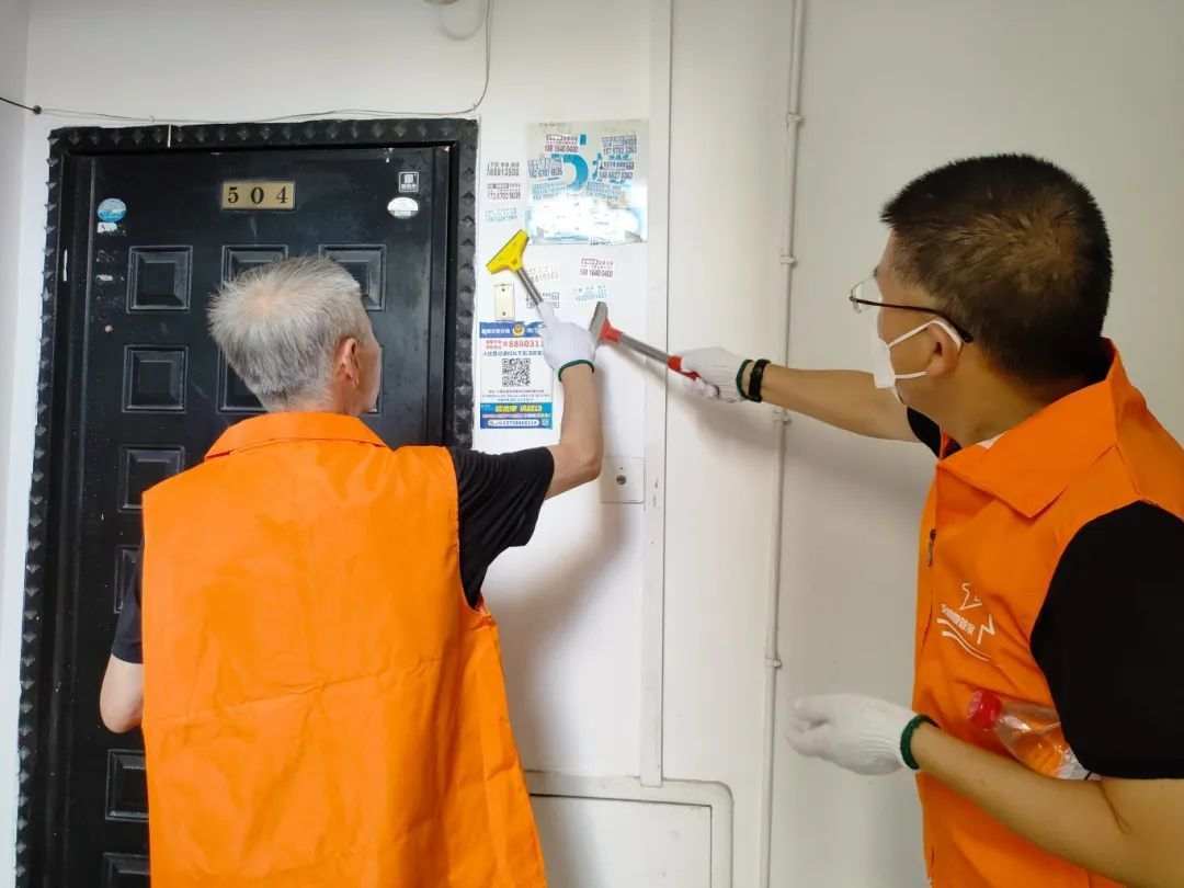 8月5日下午,大南街道荷花锦园的楼道内,“文明微管家”俞亦农、朱盘安正用小铲仔细清除墙面上的小广告。“这些‘牛皮癣’反复贴,影响环境,我们住户看着也闹心。”俞亦农一边清理一边与邻居交谈。俞亦农、朱盘安都是在职党员,“文明微管家”一开始招募,他俩便主动报名,成为了小区首批“文明微管家”。