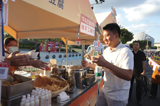 现场举行的“山海苍南·篮动潮品”市集,当地老字号特色小吃逐一亮相。桥墩月饼的松酥、矾山肉燕的鲜滑、藻溪猪油渣的鲜香,与球迷的欢呼声交织成独特的“苍南味道”。