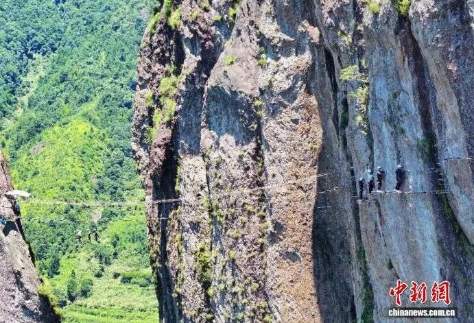 2025年,浙江乐清龙西乡,游客体验空中攀岩飞拉达。 刘言勇 摄