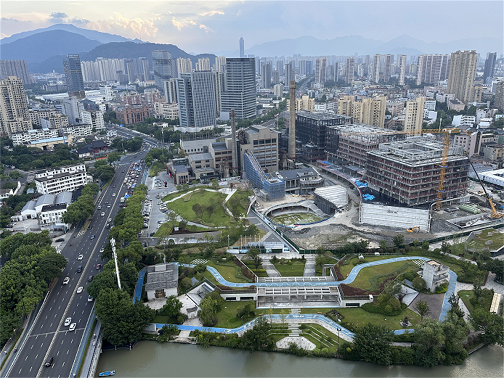 8月20日,“温州之光”东屿工业遗存公园(即东屿电厂有机更新项目)二期工程正在赶工期,现场工人对主体玻璃幕墙进行紧锣密鼓的安装。