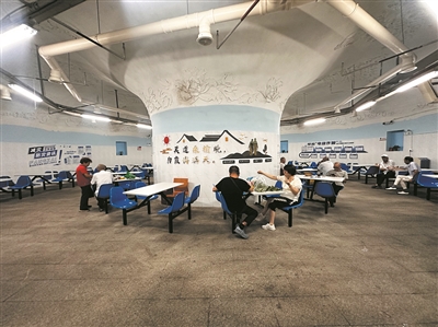 8月20日上午9时许,华盖山人防商业步行街内已是人流不断,步行街旁的避暑纳凉厅外早早坐满了一排休憩的老人。“以前夏天这里可热闹了,现在没事我还是喜欢来这儿坐坐。”一位老人感慨道。步入纳凉厅,只需几分钟,燥热便一扫而空。厅内,市民们三三两两,或刷手机、或品茶、或下棋聊天,里间的共享影院里,红色电影正引得不少人凝神观看。