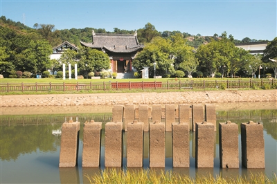 钟秀园内龙湾书画院正对明代栏杆桥遗址