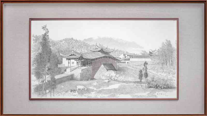 让更多人通过温州发绣了解温州其他非遗技艺,是孟永国一直坚持的事。他从喜爱的泰顺廊桥入手,20世纪90年代起,常前往泰顺,拍摄廊桥、速写廊桥,感受廊桥在四季更迭中的不同姿态,不仅广泛搜集图像素材,还深入了解其背后的故事。随着了解加深,他愈发觉得廊桥不仅是一种建筑形式,更是承载乡愁的“乡愁桥”、与百姓生活紧密相连的“百姓桥”,于是决心用发绣艺术表达对廊桥的热爱。