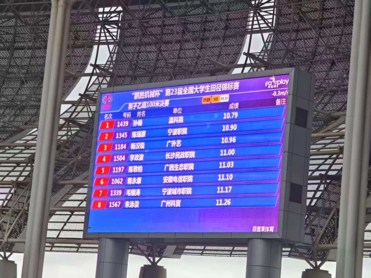 在备受瞩目的男子乙组(高职高专组)100米决赛中,温科院学生孙杨顶住压力,起跑便占据优势,随后一路领先,最终以10.79秒的优异成绩率先冲线,为学校赢得了这枚意义非凡的金牌。凭借这一成绩,孙杨也成功获评为国家一级运动员。