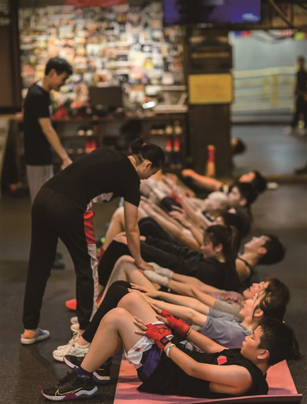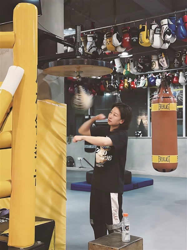 温州网讯 保持热爱,往往意味着一场持久投入。成为拳击教练后,吴雪眉的课程表总是排得满满当当,多的时候一天要上四五节课。在此之前,作为70后的她曾是一家公司的出纳。2007年,在一次朋友聚会上,她认识了如今亦师亦友的合作伙伴——拳击教练谢轼,并开始跟随他练习拳击。从那以后,吴雪眉的人生便与拳击结下不解之缘。直拳、勾拳、摆拳成了她每天的必修课。2014年,通过谢轼的介绍,吴雪眉加入尹进飞教练的“打拳趣”业余拳击队。随着拳击朋友圈的扩展,以及对拳击运动理解力和技术水平的提升,她萌生了成为一名拳击教练的想法。