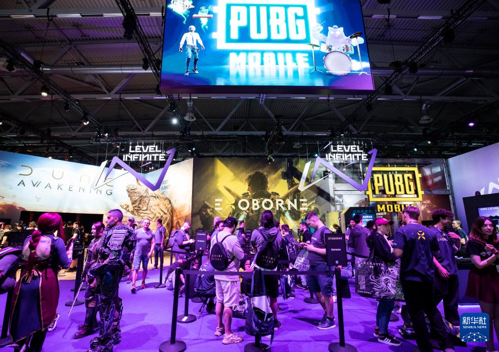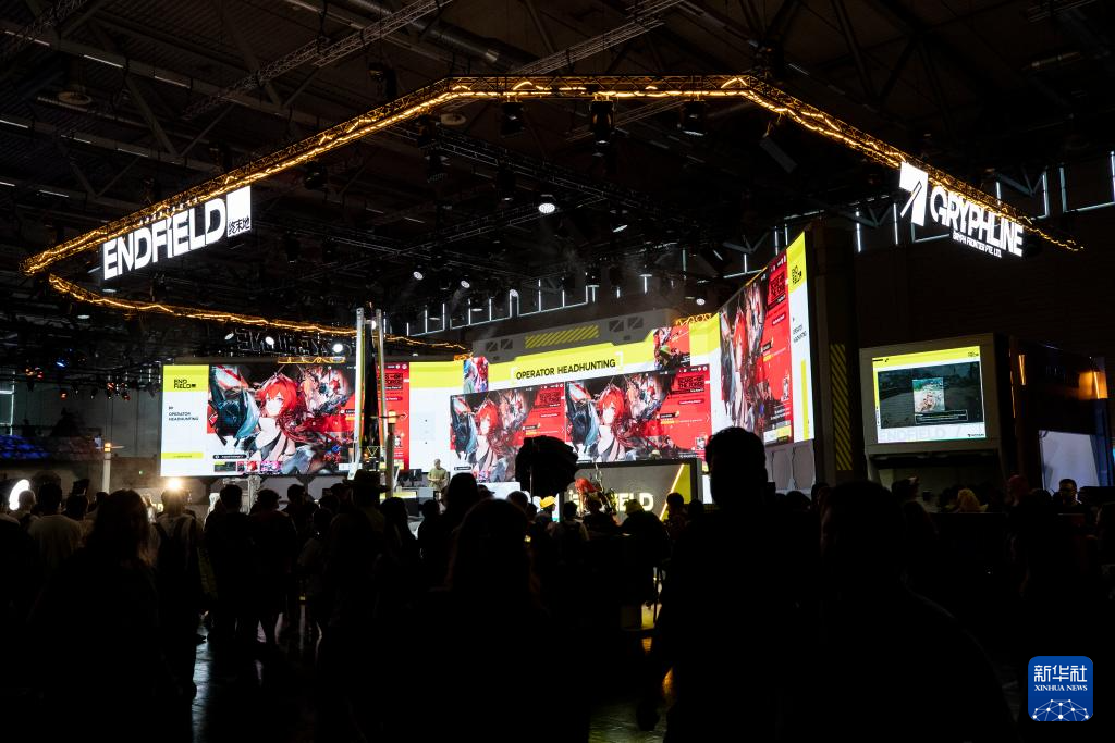 8月21日,在德国科隆,参观者在科隆游戏展观看游戏《明日方舟:终末地》对战。