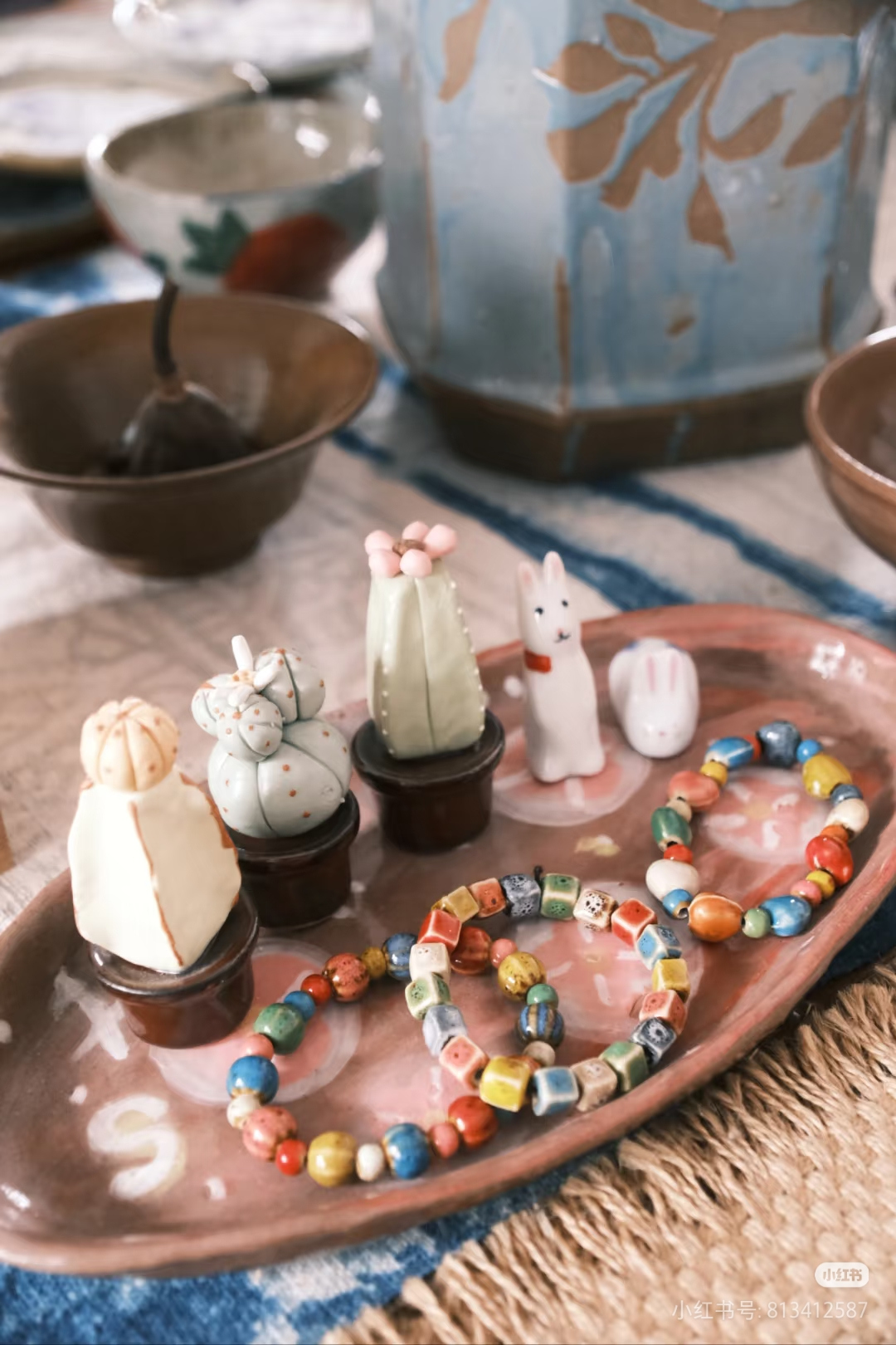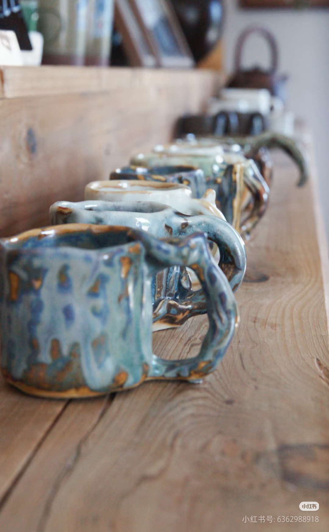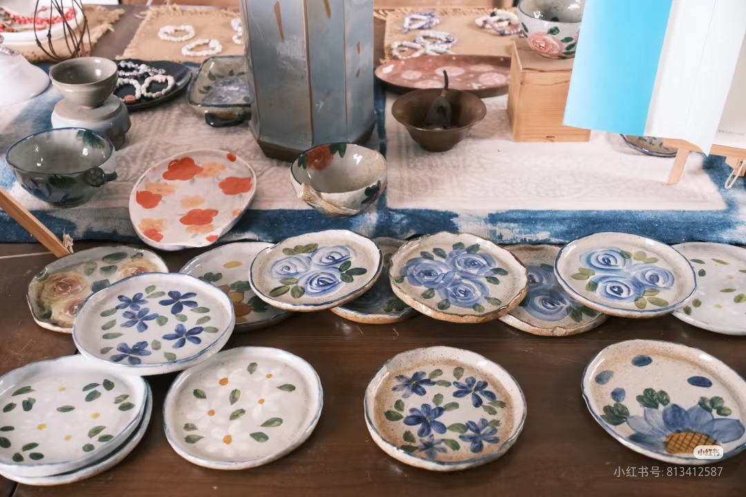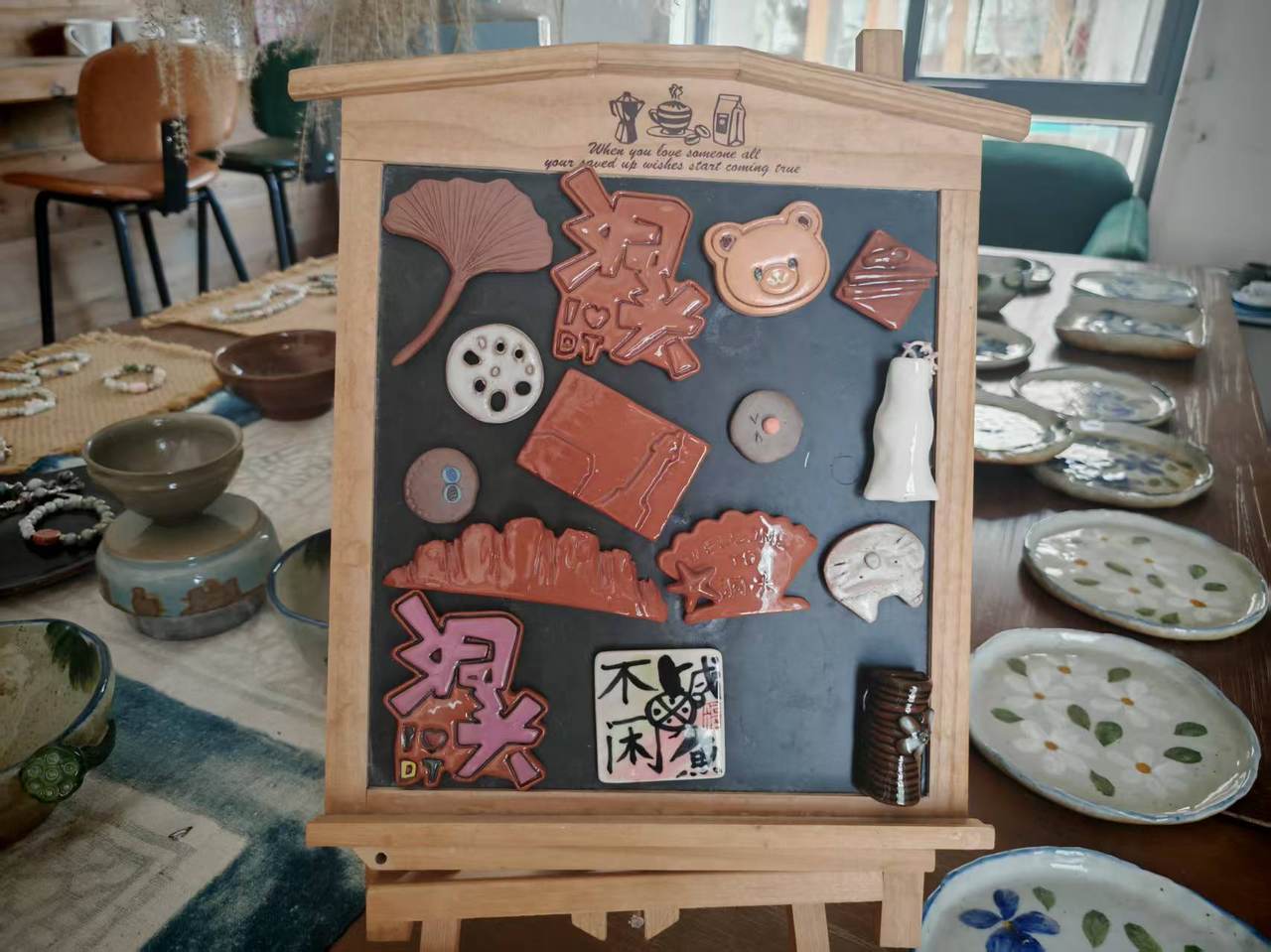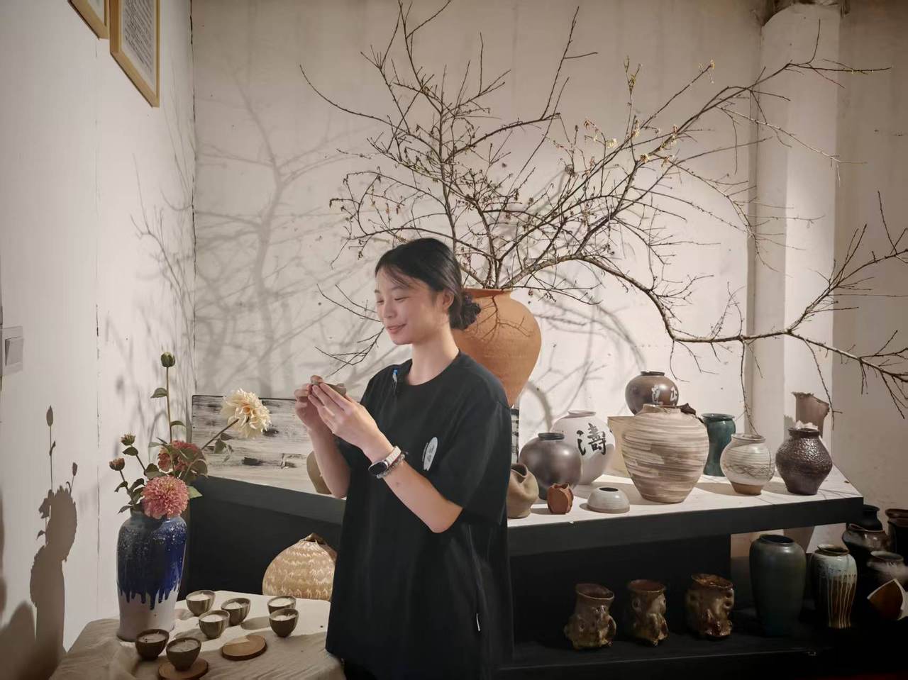 海陶美术馆布置得很别致,古朴的陶罐里插着花枝,可以在这里静坐听涛弹古琴,也可以亲手制作“咸鱼”摆件或者冰箱贴。由00后设计师打造的“亲浪杯”,有着浪花一般的波纹,捧在手里仿佛能感受到大海的脉搏。