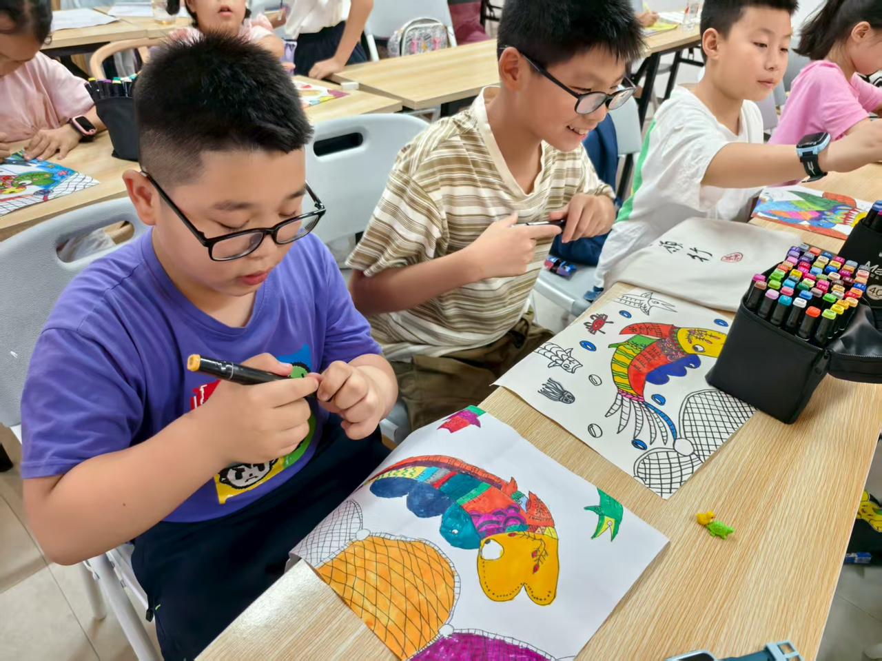 “渔家元素满满,每一笔都有海洋的味道。”熙熙攘攘的一眼人群里,来自杭州的游客小余指着自己完成的渔民画说道,上面满是鱼群、浪花和船锚,大胆的撞色让画作格外鲜艳。“回家挂在房间里,就像把洞头的阳光和海风都带回了家。”