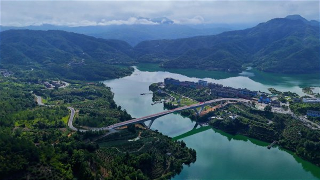 该特大桥起点位于司筱线与百莲路交叉口,终点衔接后坑村与环湖慢行系统二期公路,全长498米,主跨达195米。摄影: 薛海翔 赖淼莲