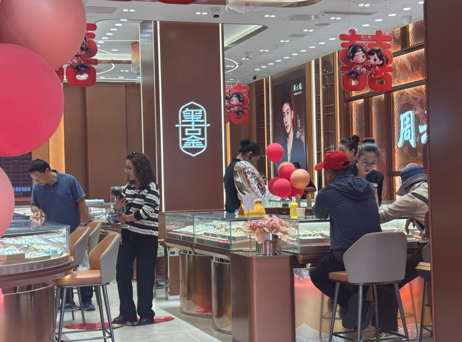 黄金珠宝店内选购黄金首饰的顾客络绎不绝