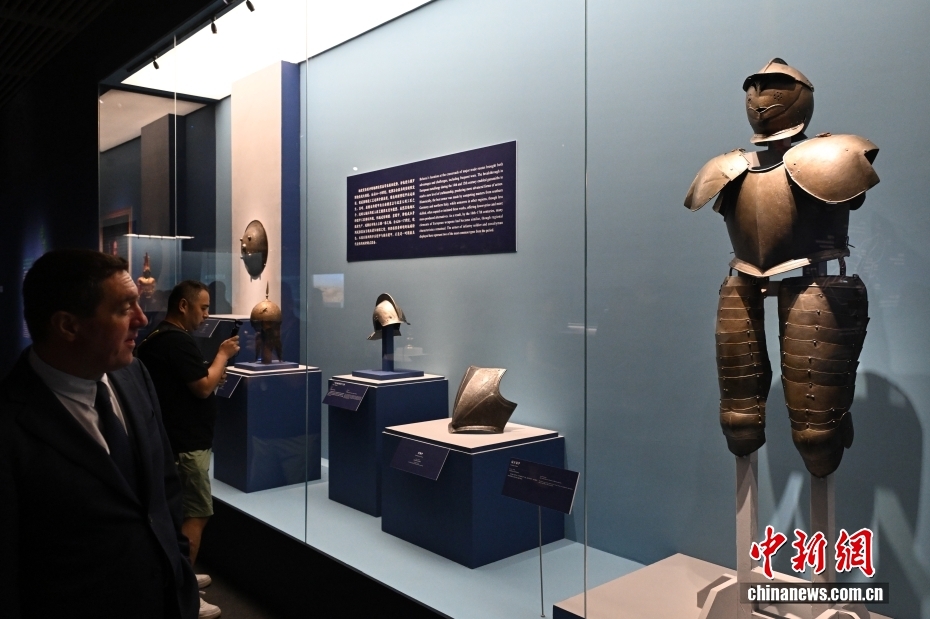 8月27日,“文明的星河——上海合作组织国家博物馆藏文物联展”在中国国家博物馆开幕。本次展览是上海合作组织国家文博机构首次在北京举办文物联展,展览以“上海精神”中的“尊重多样文明、谋求共同发展”为主题,精选上合组织各成员国10家文博机构的文物珍品220件(套)。图为参观者在国博观看展出的骑兵盔甲(白俄罗斯)。