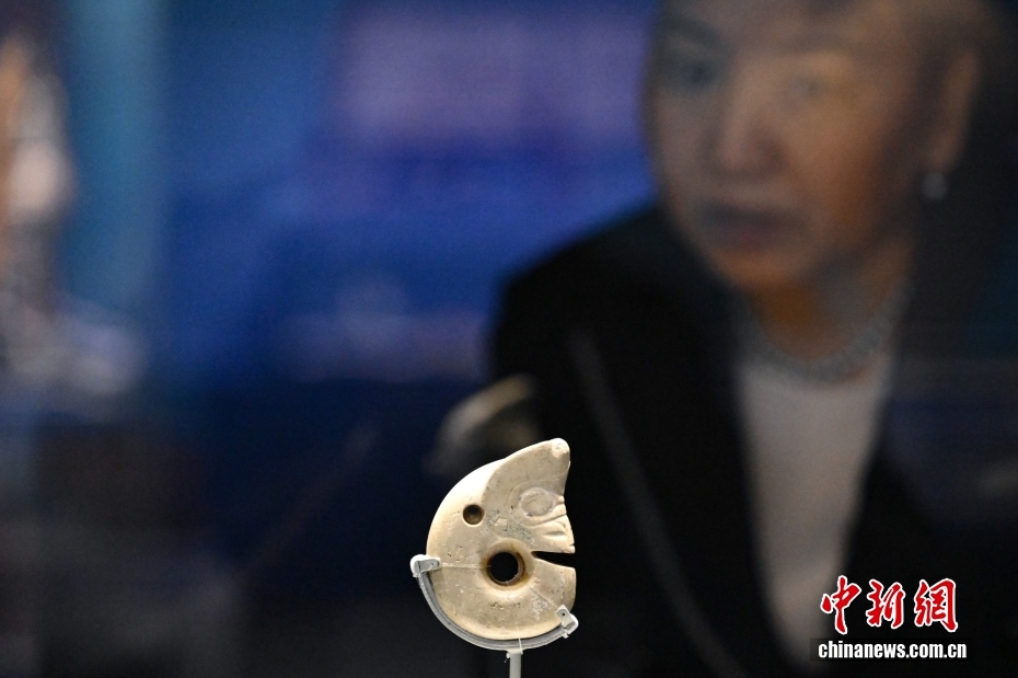 8月27日,“文明的星河——上海合作组织国家博物馆藏文物联展”在中国国家博物馆开幕。本次展览是上海合作组织国家文博机构首次在北京举办文物联展,展览以“上海精神”中的“尊重多样文明、谋求共同发展”为主题,精选上合组织各成员国10家文博机构的文物珍品220件(套)。图为参观者在国博观看展出的玉猪龙(中国新石器时代红山文化)。