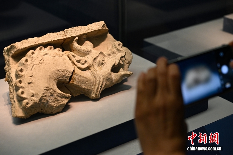 8月27日,“文明的星河——上海合作组织国家博物馆藏文物联展”在中国国家博物馆开幕。本次展览是上海合作组织国家文博机构首次在北京举办文物联展,展览以“上海精神”中的“尊重多样文明、谋求共同发展”为主题,精选上合组织各成员国10家文博机构的文物珍品220件(套)。图为参观者在国博拍摄展出的浮雕龙头(乌兹别克斯坦)。