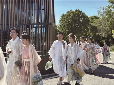 永嘉县婚姻登记处首个户外颁证点入驻原野春天,15对新人参加鹊华集雅宋韵七夕游园会。 蒋文广 摄