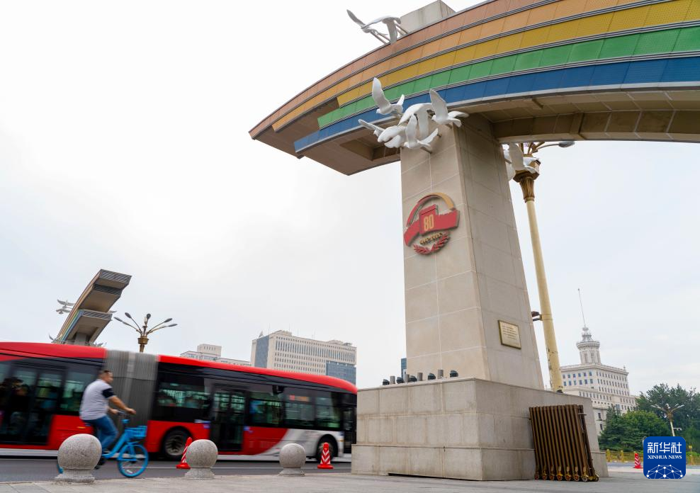 北京多种形式布置纪念抗战胜利80周年主题景观