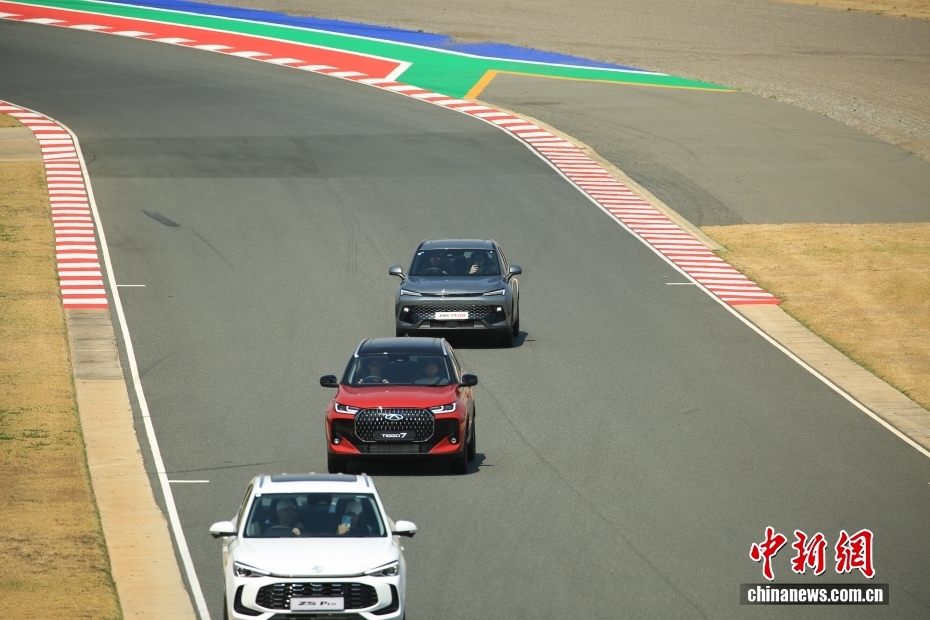当地时间8月30日,在南非约翰内斯堡汽车节上,中国品牌汽车行驶在卡亚拉米大奖赛道。该汽车节于8月28日至31日在约翰内斯堡卡亚拉米赛场举办。来自中国车企的新能源车吸引了众多当地民众参观、体验。中新社记者 孙翔 摄