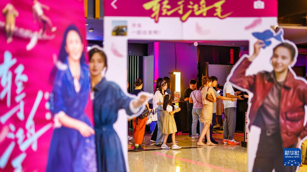 8月31日,家长带着孩子准备在武汉市江岸区一家影城观看电影。新华社发(赵军摄)