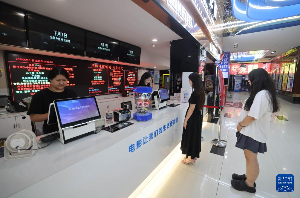 8月31日,在山东省临沂市沂南县中影时光影城,观众在购票。新华社发(王彦冰 摄)