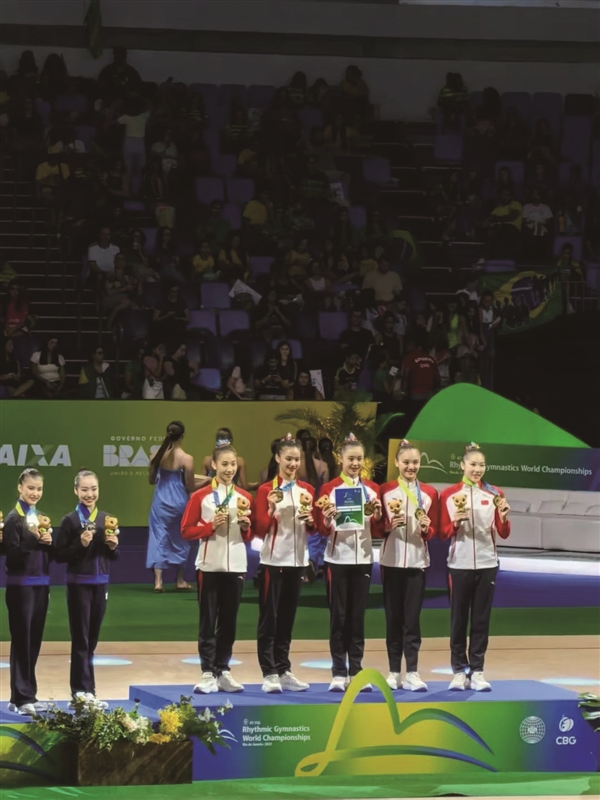 此次世锦赛,刘妙婷与队友以创新编排的《平潭映象》和《黑悟空》两套节目惊艳全场。在5带决赛中,中国队将闽南文化元素与现代艺术体操技巧完美融合,动作如行云流水,最终以绝对优势夺冠。日本队与西班牙队分获银牌、铜牌。而在3球2圈项目中,以《黑悟空》为主题的奇幻风格编排获评委青睐,28.350分的成绩让中国队登上世锦赛领奖台。“姑娘们在赛场上表现出了不惧对手、永不言弃的精神。”国家队教练金韵评价道。