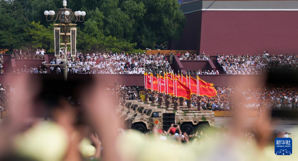 9月3日,纪念中国人民抗日战争暨世界反法西斯战争胜利80周年大会在北京隆重举行。这是战旗方队通过天安门广场。新华社记者 颜麟蕴 摄
