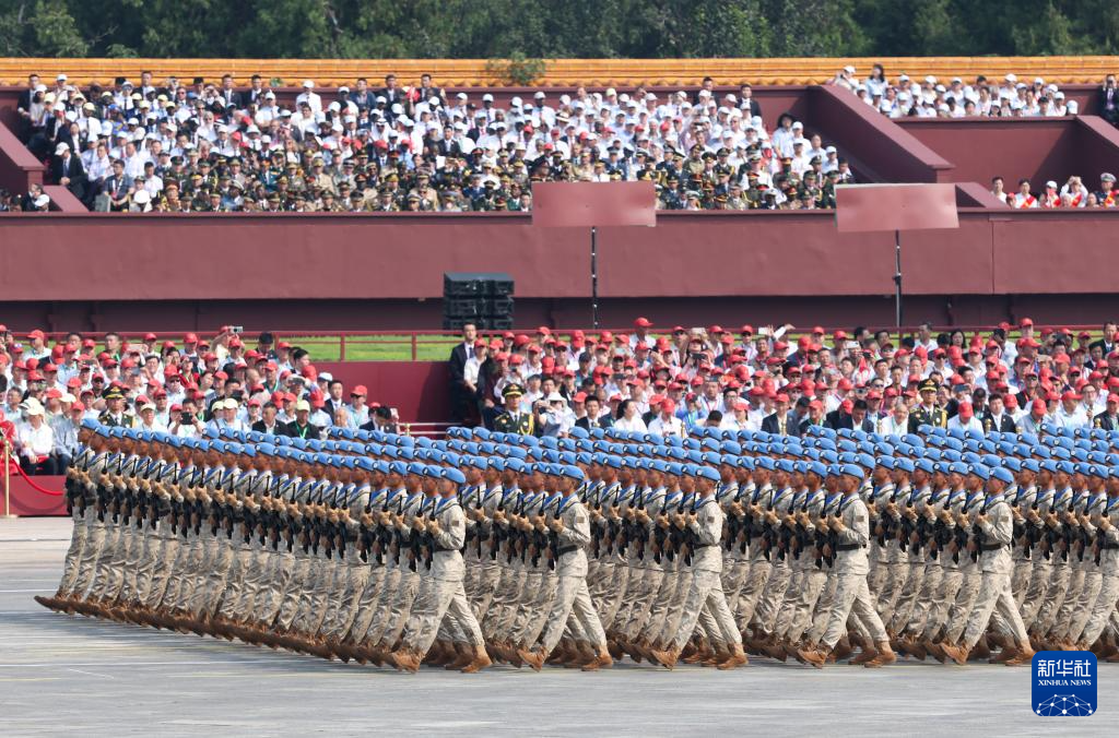 9月3日,纪念中国人民抗日战争暨世界反法西斯战争胜利80周年大会在北京隆重举行。这是维和部队方队通过天安门广场。新华社记者 刘颖 摄