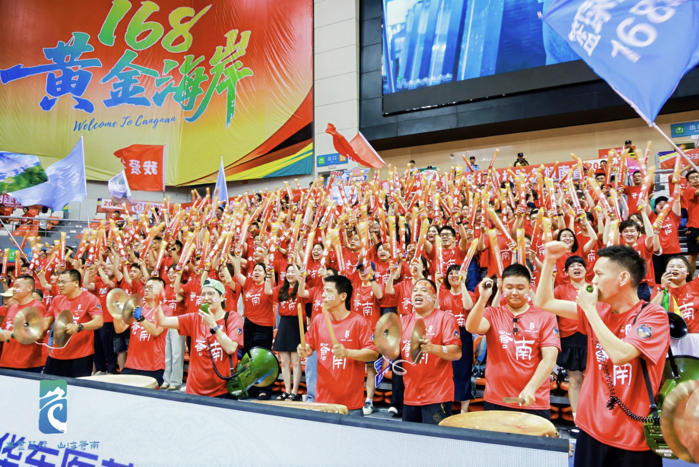 “南哥”主场,红色应援服,红色加油棒,红色标语……无处不在的“苍南红”就如现场球迷的氛围,火红似火。