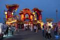 9月4日,在内蒙古乌兰察布市“乌兰察布之夜”特色街区,游客们在花灯前留影。
