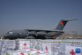 9月7日,在阿富汗喀布尔,工作人员从中国空军运-20飞机上卸载援助阿富汗的救灾物资。