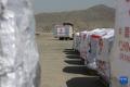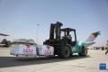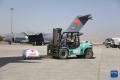 9月7日,在阿富汗喀布尔,中国援助阿富汗的救灾物资堆放在停机坪上。