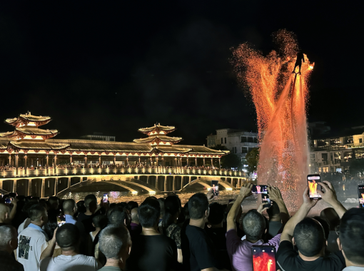 温州网讯 9月11日,为期5天的第五届温州瓯式月饼文旅嘉年华在苍南县桥墩镇举行。此次活动由苍南县桥墩月饼行业协会主办,现场除了传统品月饼、赏歌舞、逛集市外,还有“浙BA”球员见面会、祭月仪式、水上空中飞人、火凤凰表演等精彩环节。