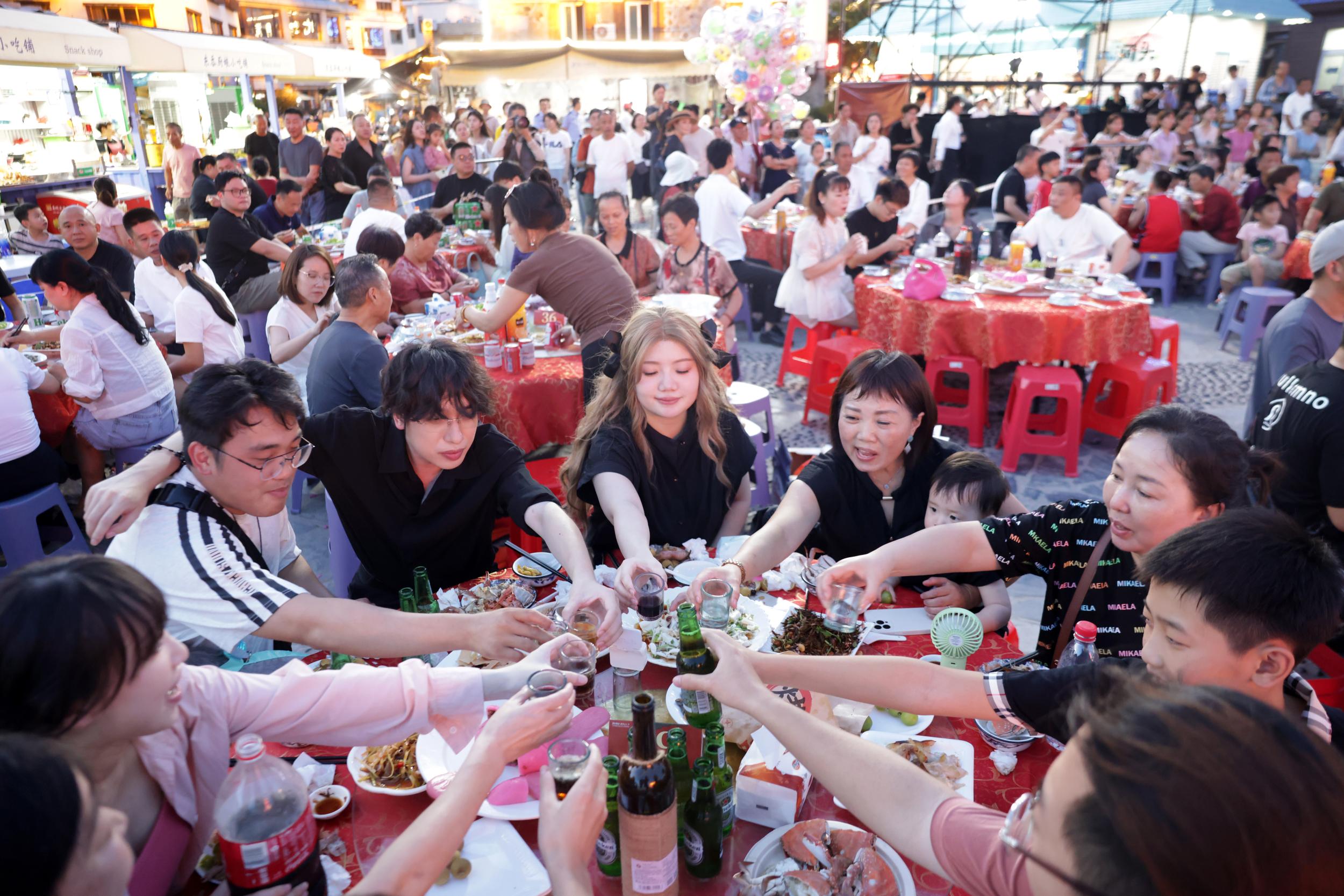 8月30日晚,洞头东岙沙滩广场,众多游客、市民正在当地组织的七夕福宴活动现场品味海鲜等美味,感受洞头传统美食文化。郑鹏 摄